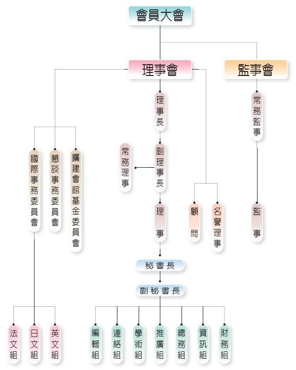為理事長,三人為副理事長。理事長對內綜理會務,對外代表本會並擔任會員