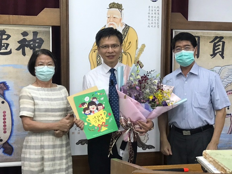 欣逢教師節陳嘉瑞講師代表接受學員獻花及敬師卡