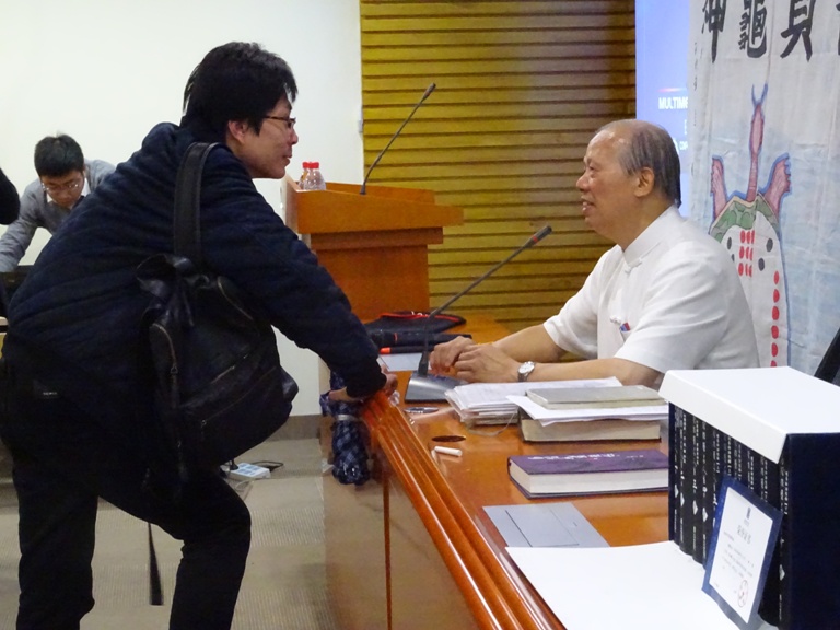 吳教授的演講獲得很大迴響,於演講結束後,聽眾紛紛與吳教授合影留念。誠如吳教授結論中所言:石頭過江,善緣何在?如今在北師大首度演講,為「弘易九洲通九化」增添無限的生機。這一夜,不冷。