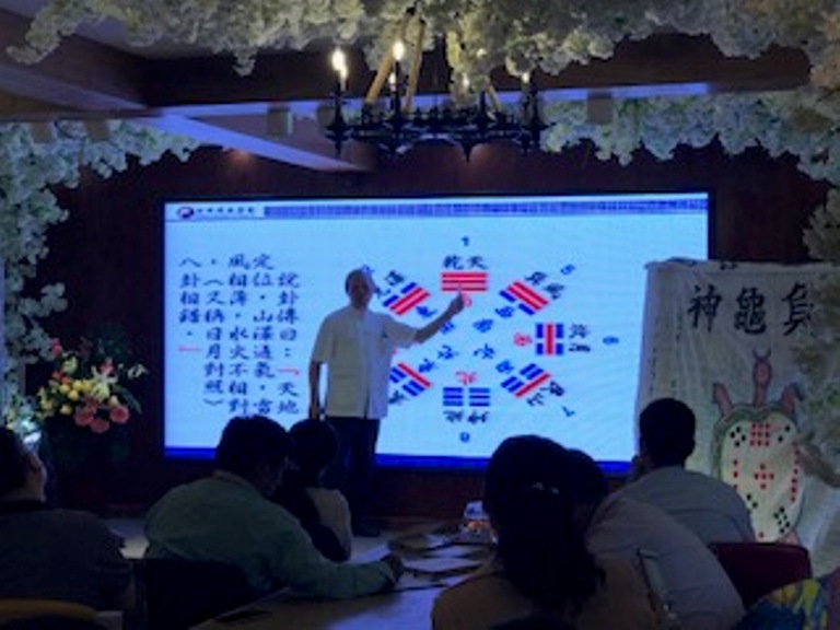 五月二十八日吳秋文教授應嵩岳商會郜會長的邀請,在鄭卅知庫大學第二次專題演講,繼續「易經智慧與東方傳統文化」的主題,與會者除了企業界、政界、教育界、社界等精英之外,此次鞏義河洛鎮一群關心傳統文化者,也利用美好假期齊聚一堂,聆聽吳師闡述傳統文化的脈絡,並探源河洛之根、文化之本的易經源頭。