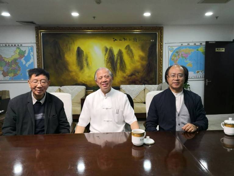此行的第三件事就是會見易學大老美國夏威夷大學教授成中英博士。成教授八十四歲,此次回京期間,希望與吳師在北京相會。十月二十九日吳師和成博士終於相見歡,地點就近選在弟子秦升益董事長的仁創集團,三人相知相惜,暢談易經傳統文化的復興及二十一世紀的傳承使命。